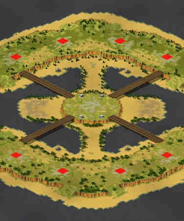 星尘斗士4v4,上下对称的44地图,加强电脑难度,进攻挺猛,开启超级武器,新手在对面可以少放几个电脑,入门玩家会感觉比较激情。