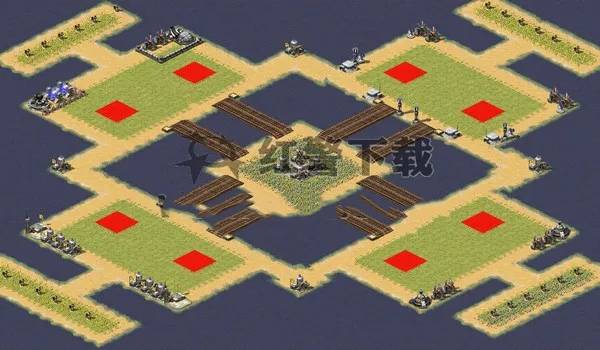 中间4个油井一片宝石矿,加强电脑难度,默认开启超级武器,一张经典的2人一组对战地图。