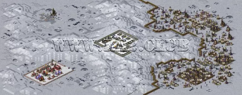 提示:地图中部残留下来的美军月球基地中的兵营可造火箭飞行兵(蓝色的,可占领)。
